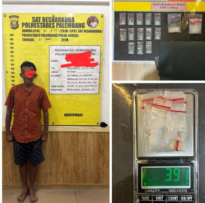 Saat ini, tersangka beserta 14 paket sabu dan barang bukti pendukung lainnya telah diamankan di Mapolrestabes Palembang untuk menjalani proses penyidikan lebih lanjut guna mengungkap kemungkinan adanya jaringan yang lebih besar.(Red)