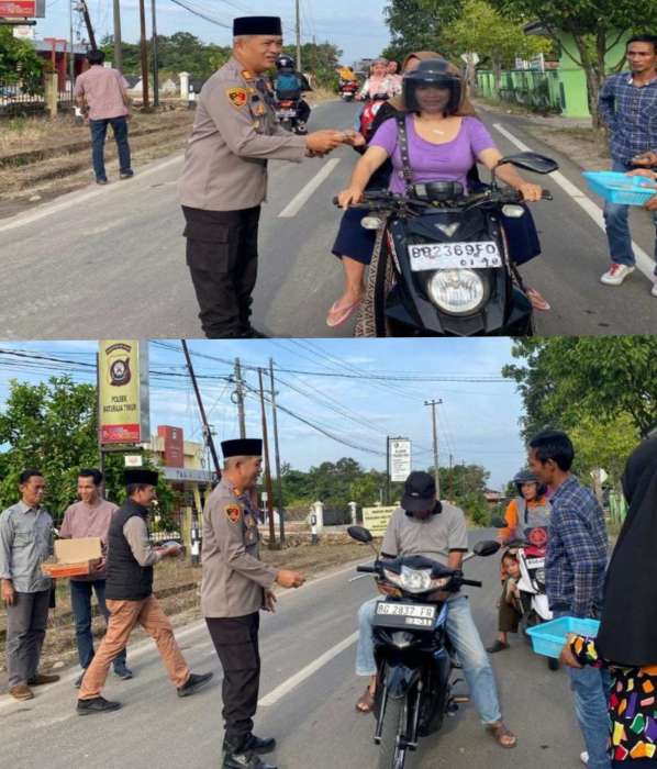Personel Polres OKU Timur juga turut serta dalam aksi sosial tersebut, yang merupakan wujud kepedulian Polri terhadap warga yang masih beraktivitas menjelang waktu berbuka.