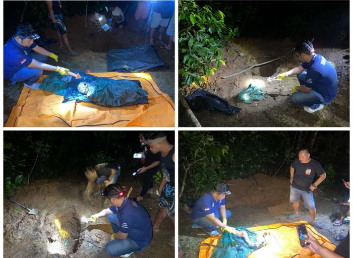 Dari hasil pemeriksaan, warga menemukan tiga karung plastik yang ditanam di dalam lubang sedalam sekitar 1,5 meter.