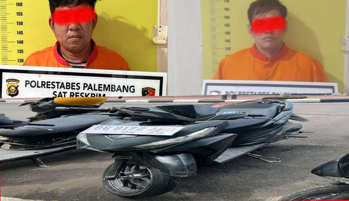 Petugas menyita satu unit sepeda motor matic yang digunakan sebagai sarana kejahatan; kedua tersangka kini ditahan di Mapolrestabes Palembang.