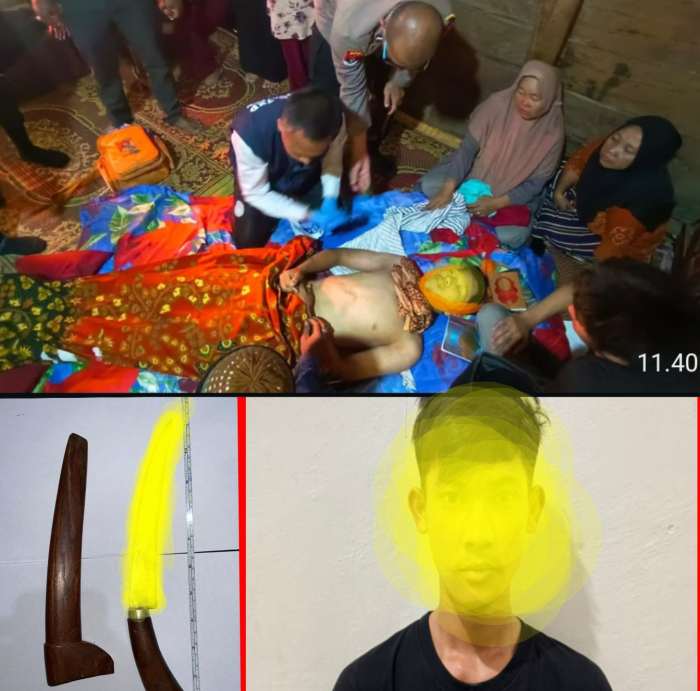 Petugas mengamankan satu bilah badik sepanjang 29 cm, pakaian pelaku, dan sejumlah barang dari lokasi kejadian.