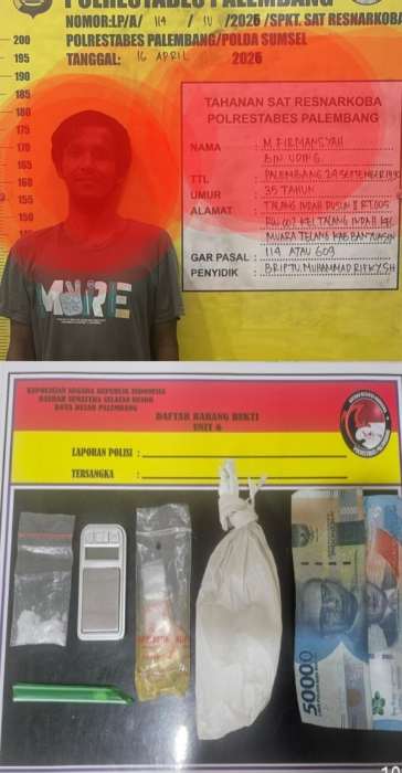 PALEMBANG ,Sumatera Selatan 17/04/2026 lenteraoku.com – Polda Sumatera Selatan melalui Unit 6 Satuan Reserse Narkoba Polrestabes Palembang kembali menunjukkan ketegasan dalam memberantas peredaran narkotika. Seorang tersangka pengedar sabu berhasil diamankan dalam penggerebekan di kawasan Jalan Slamet Riyadi, Lorong Mentok, Kelurahan 11 Ilir, Kecamatan Ilir Timur III, Kota Palembang, Rabu (15/4/2026) sore.