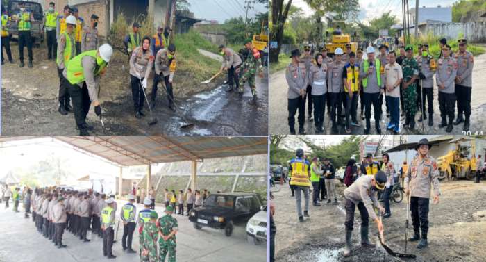 Polres OKU Turun Tangan Perbaiki Jalan Lintas Sumatera Jelang Arus Mudik Lebaran